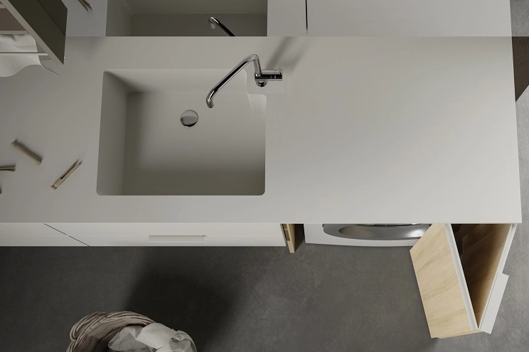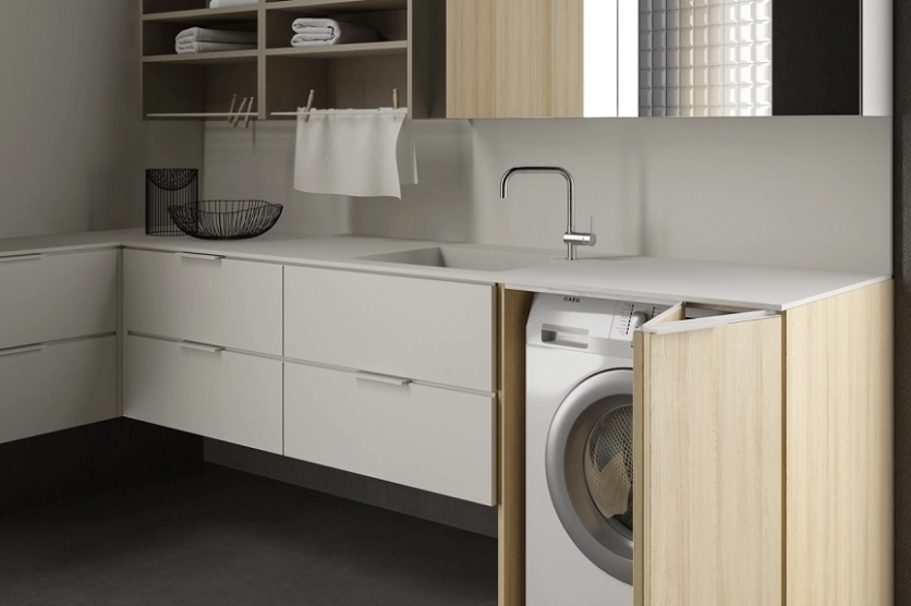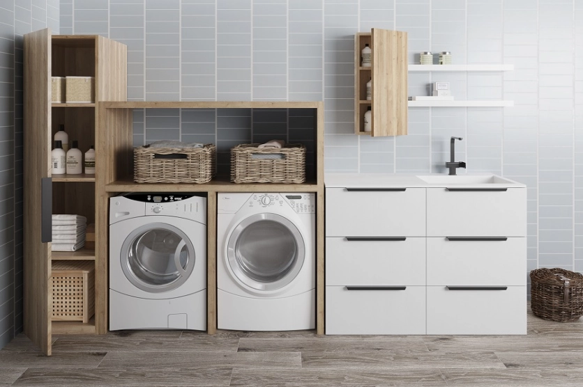 Pour l’aménager et optimiser l’espace, qu’il soit vaste ou plutôt restreint, nous vous suggérons d’organiser votre buanderie avec des rangements alliant ergonomie, polyvalence et confort, sans pour autant négliger le design.