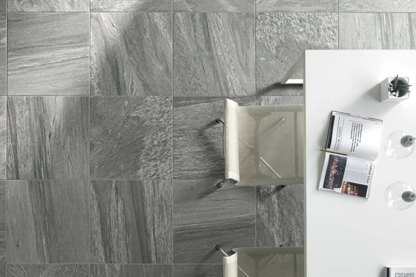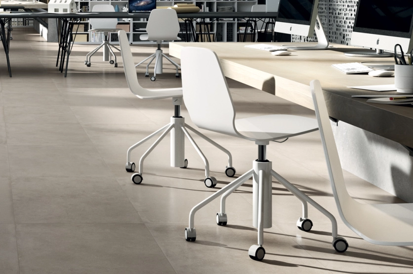 Au-delà du bureau, de l’assise et de l’éclairage, il n’est pas superflu de réfléchir au revêtement de sol. Facile à laver, résistant et durable, le carrelage répond idéalement à l’éternelle problématique des innombrables déplacements de chaise (à roulettes ou non…) qui labourent le sol.