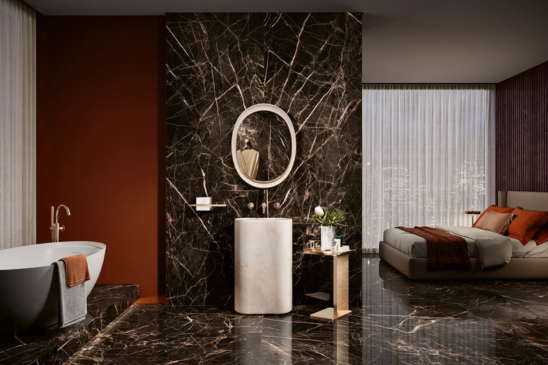 Par touches décoratives, ou bien en total look sur les sols et les murs pour une continuité visuelle élégante, il s’adapte à toutes les pièces de la maison, du salon à la salle de bains, en passant par la cuisine et la chambre.