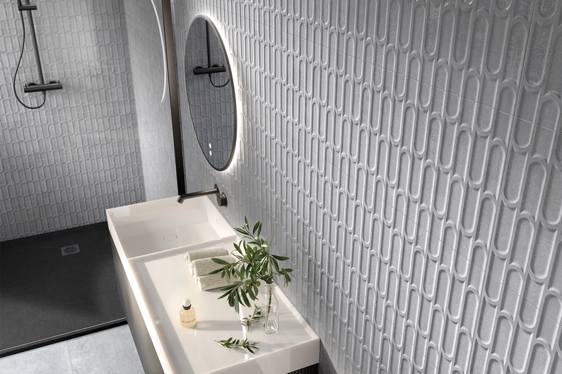 Souvent spectaculaire, mais sachant aussi se faire discret, le carrelage en relief offre un impact visuel fort sur la pièce où il est installé. Il lui apporte également une nouvelle luminosité, grâce aux différentes facettes de chaque carreau qui se renvoient leurs reflets dans un jeu d’ombres, de lumières et de volumes étonnant.