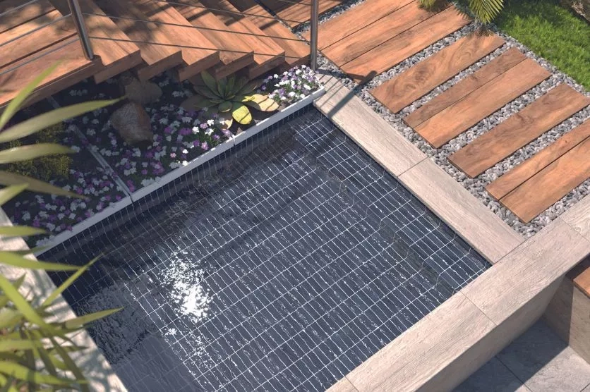 Le noir s’imposera pour faire de votre piscine un bassin luxueux, qui met en valeur le design et la géométrie. Quant au gris, il confèrera à l’eau une apparence changeante, entre bleu pâle et gris argenté, selon l’ambiance lumineuse