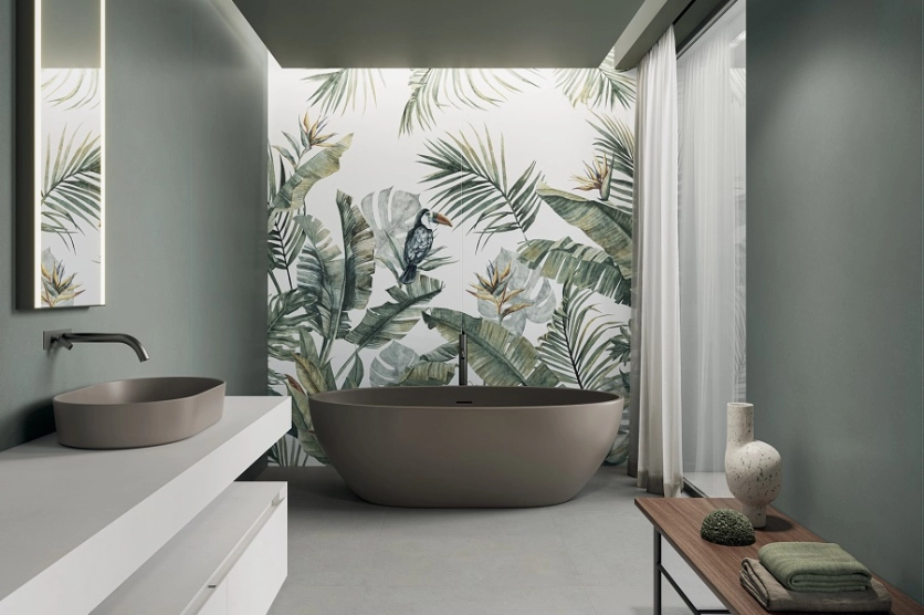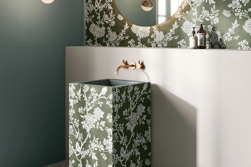 C’est l’occasion de mettre en avant cette couleur énergisante ou reposante, au gré de ses nuances. Justement, quel vert choisir ? un vert sapin, naturel et profond ? Un vert gazon, vif et joyeux ? Un vert d’eau, lumineux et transparent ? Un vert émeraude, profond et chaleureux ? Ou plutôt amande ? prairie ? bouteille ? jade ? Le choix est infini, et offre une latitude illimitée pour choisir le carrelage et créer les ambiances de la maison. Il se décline en version unie, ou bien à fantaisies géométriques, ou encore à motifs floraux…
