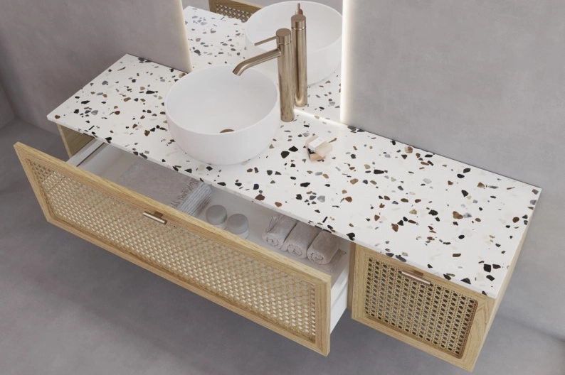En cannage et en frêne massif, la collection Cannage habille la salle de bains avec goût et lui donne un petit air à la fois vintage et contemporain.
