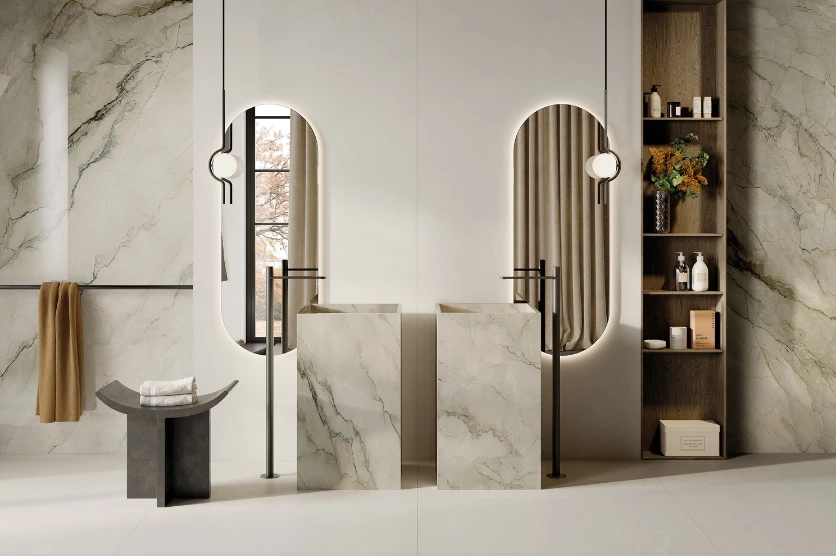 Cette série sublime la résine avec un effet spatulé unique. Les couleurs unies amplifient l'espace pour une continuité visuelle parfaite.