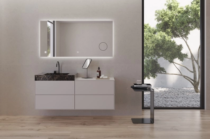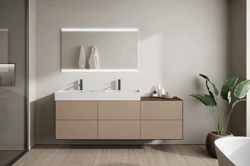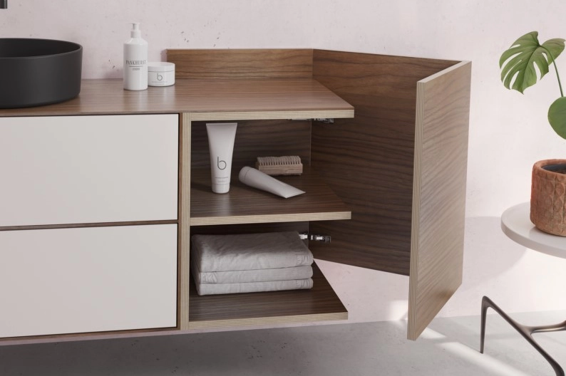 Découvrez le meuble Lea : design épuré, tiroirs intégrés, ouverture douce, modularité avec options de rangement. Idéal pour aménager votre salle de bain avec style et fonctionnalité.
