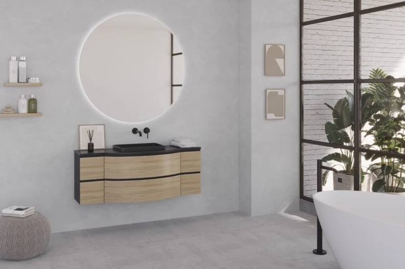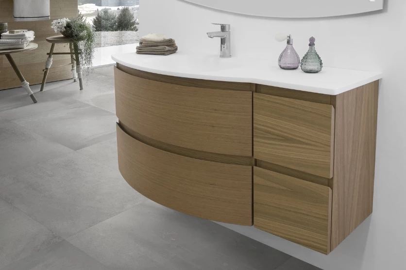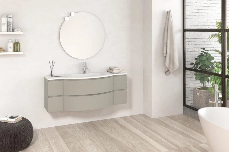 Newport, meuble galbé d'exception, allie fonctionnalité, élégance et confort pour une salle de bains sophistiquée. Succombez à son charme irrésistible !