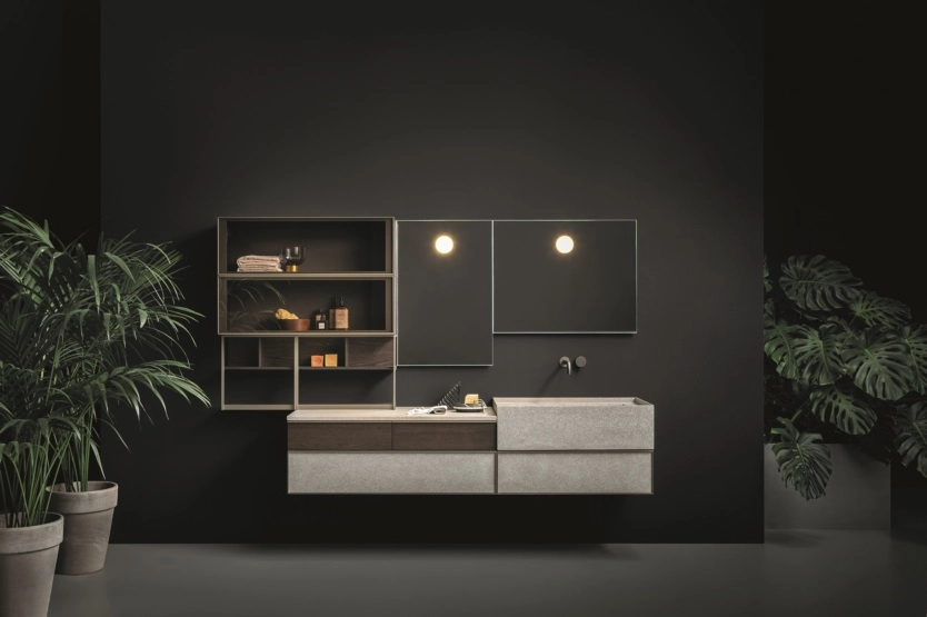 Le meuble de salle de bain Quari s’inspire des traditions artisanales vénitiennes, notamment celles des maîtres verriers qui travaillaient les cadres et les verres de forme carrée, les « quari », pour en faire des miroirs. Les cadres en aluminium, le Terrazo vénitien, les pierres naturelles, le grès cérame Laminam ®, les aspects ciment, les laques métallisées, les bois nobles offrent une collection sophistiquée, esthétique et de très grande qualité.